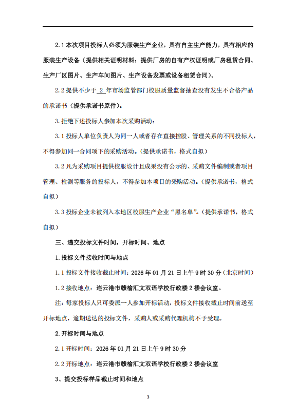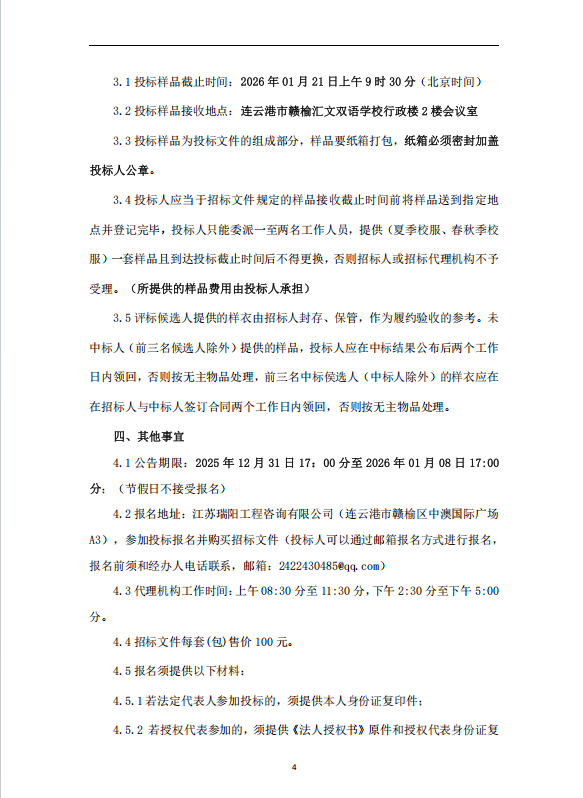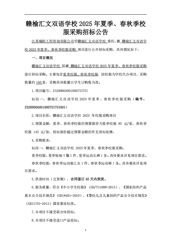 赣榆汇文双语学校2025年夏季、春秋季校服采购招标公告