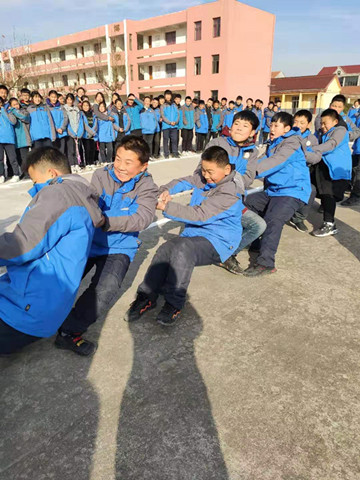 为丰富学生校园生活,增强学生间的凝聚力和合作意识,12月18日上午,九里中学举行了拔河比赛。