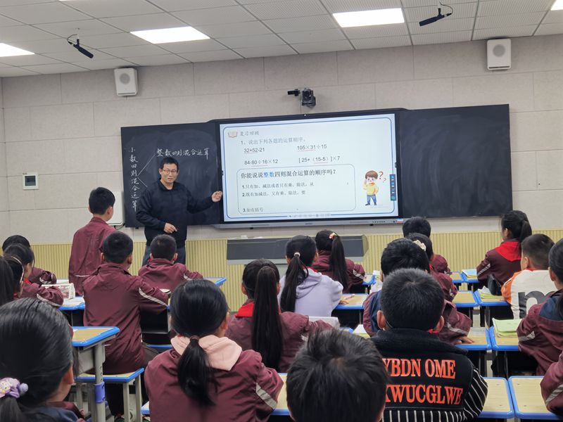 在数与代数领域,皮秀波和朱波两位执教《整十整百数除以一位数》、王梦杰和张庆议执教《小数四则混合运算》、陈丽执教《7的乘法口诀》和刘金泽执教《不含括号的三步计算式题》,老师们分别通过复习导入,唤醒旧知,探究新知,紧扣教材的重难点,突出算理算法,做到精讲点拨。