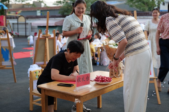 随后是“教师送祝福”环节,各位教师把写上对孩子真挚的祝福语的红纸藏进红包中,向毕业班小朋友表示美好祝愿,收到红包的小朋友心里都乐开了花。