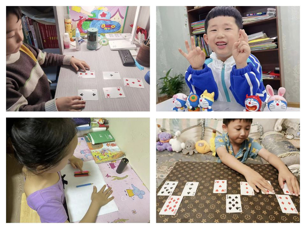 布置作业时,老师们会善意地“知会”家长,请他们在游戏中无痕“放水”,智慧地等一等、让一让孩子们,锻炼孩子的反应速度的同时,让他们获得成就感,为后面更大数的计算做好铺垫。