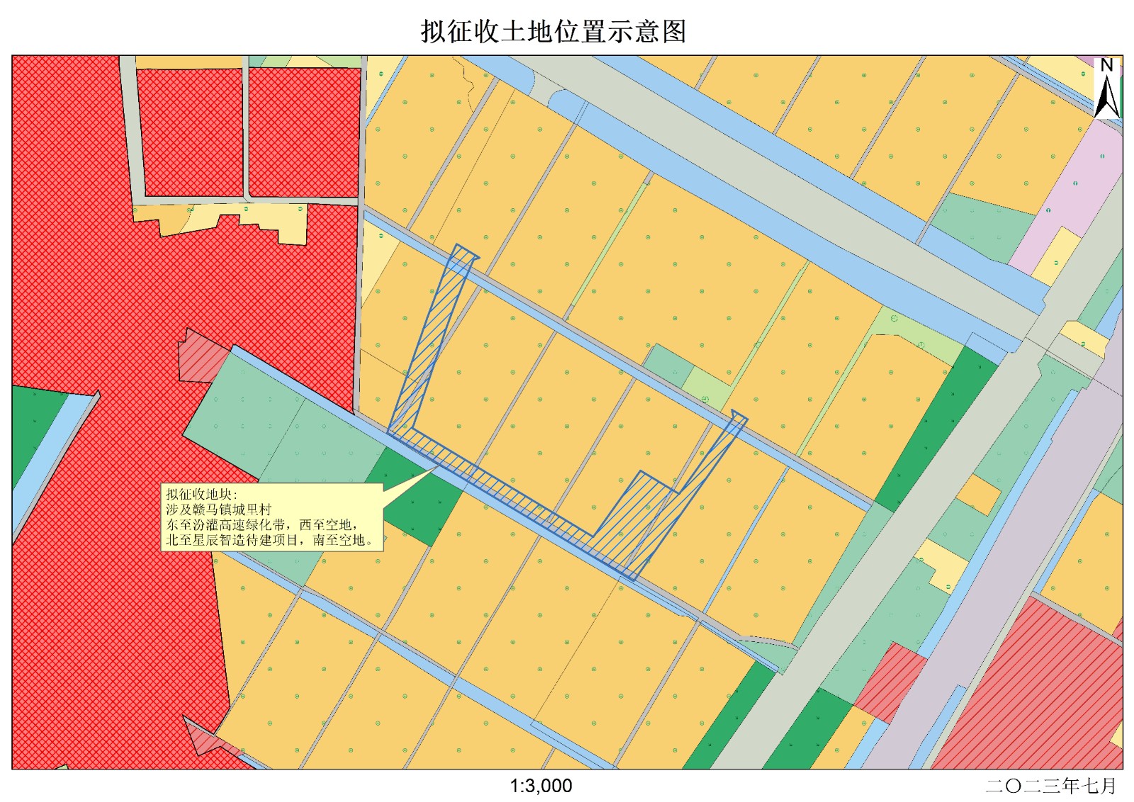 本次拟征收土地位于赣马镇城里村,拟征收土地位置详见附图。