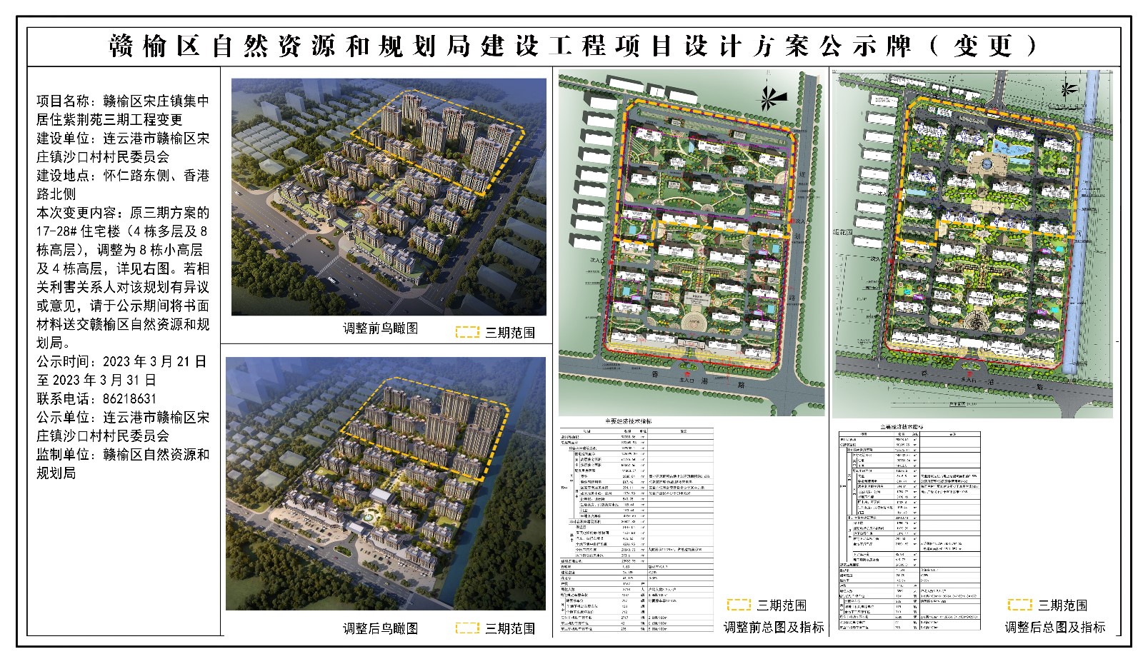 赣榆区宋庄镇集中居住紫荆苑三期工程变更批前公示
