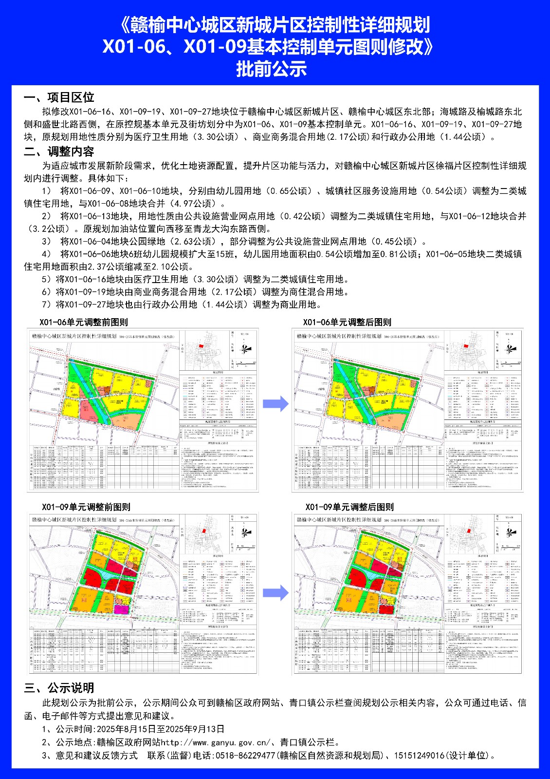 《赣榆中心城区新城片区控制性详细规划X01-06、X01-09基本控制单元图则修改》批前公示