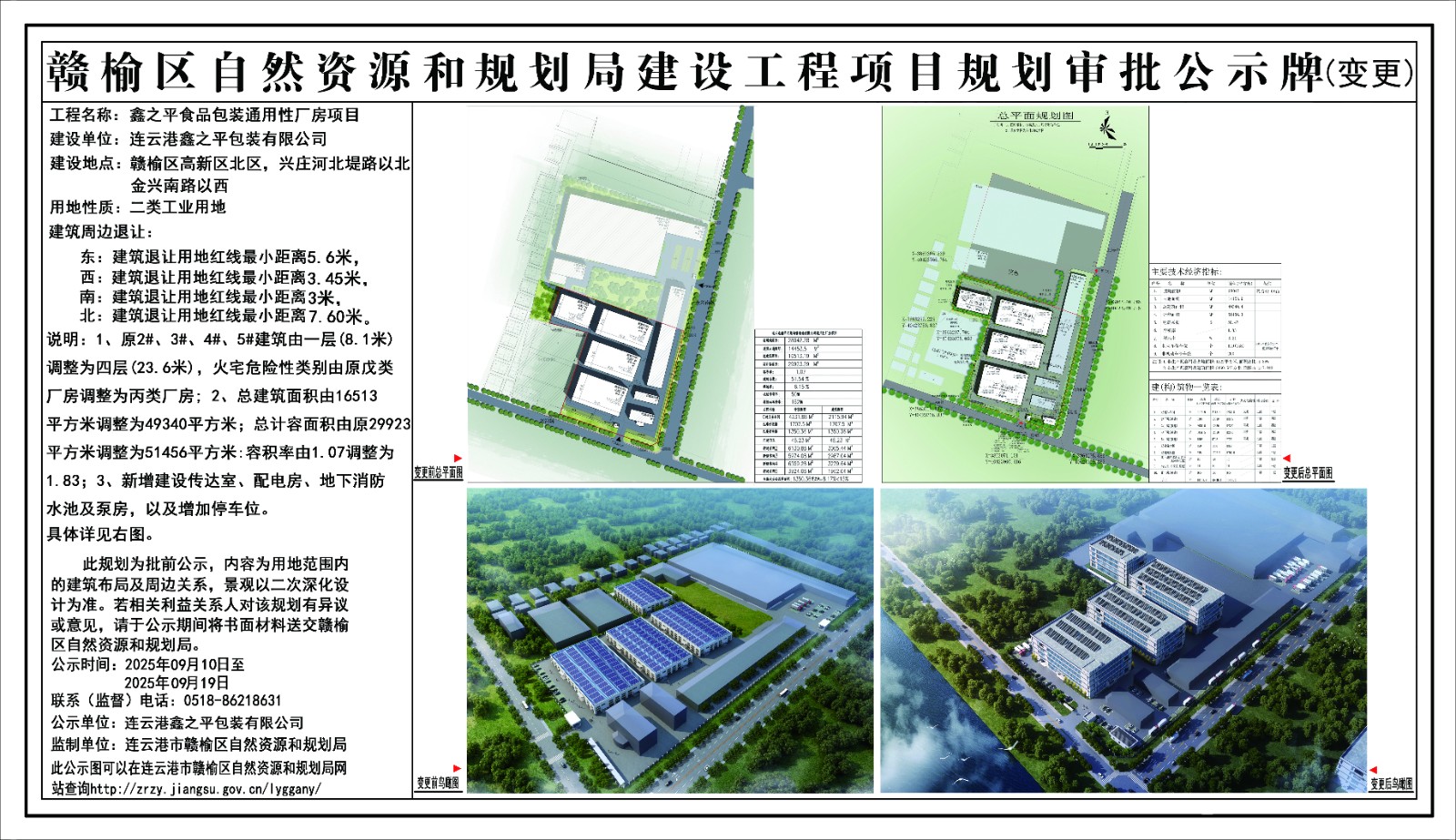 鑫之平食品包装通用性厂房项目变更批前公示