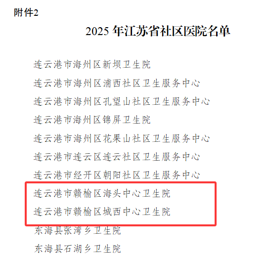 【喜讯】赣榆新增2家农村区域性医疗卫生功能中心和2家省级社区医院