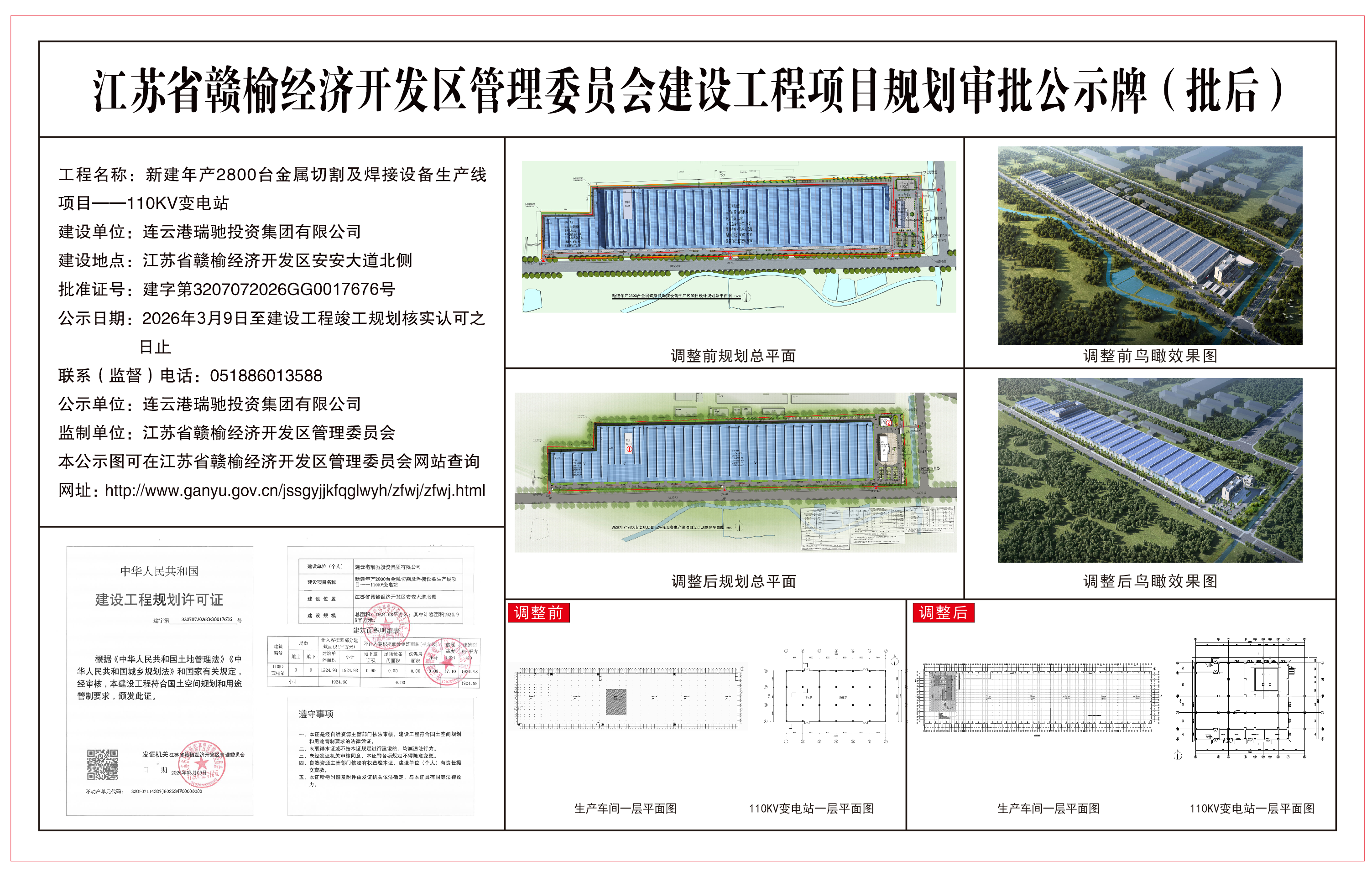 连云港瑞驰投资集团有限公司新建年产2800台金属切割及焊接设备生产线项目——110KV变电站规划审批(批后)