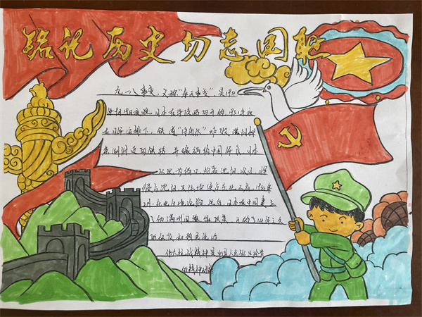 近日,九里小学开展以“勿忘国耻 牢记历史 吾辈自强”为主题的活动,旨在引导学生了解历史、以史为鉴、勿忘国耻,同时将和平的信念传递给每位师生。