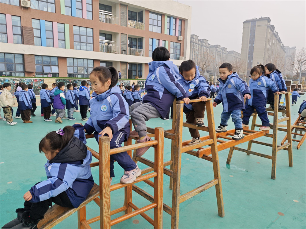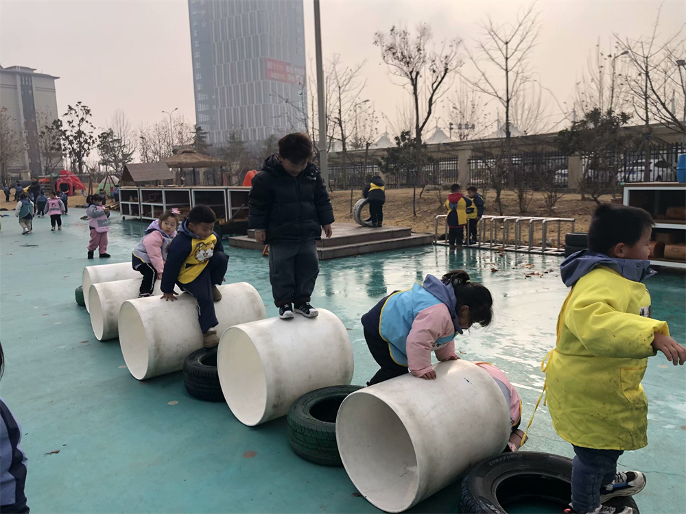 一到户外锻炼的时间,整个幼儿园的户外成了孩子们快乐的海洋。锻炼项目既有传统游戏中的沙包、跳皮筋以及跳大绳等项目;也有着趣味田径、快乐体操、跑酷等现代化体育项目的加入。在体育活动的组织中,教师也注重幼儿身体各方面的发展,在调整游戏材料,游戏区域循环中,进一步促进幼儿身体各个方面的发展。