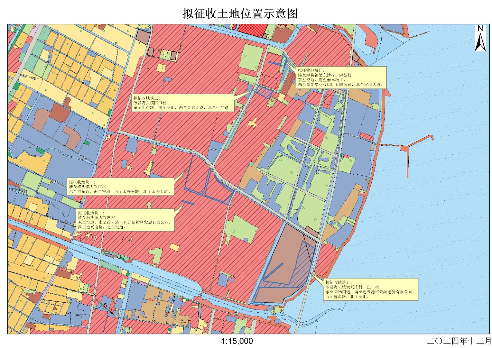 本次拟征收土地位于海头镇大兴庄村、匡口村、海脐村、梁东沙村范围内。拟征收土地位置详见附图。