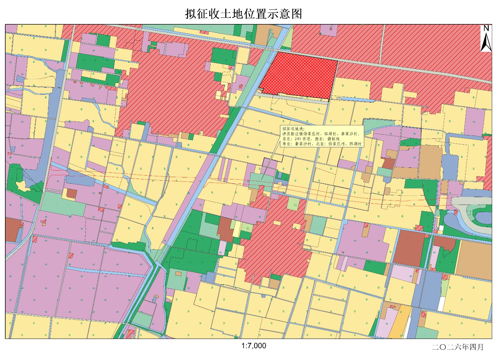 本次拟征收土地位于柘汪镇侍家庄村、四湖村、秦家沙村范围内。拟征收土地位置详见附图。