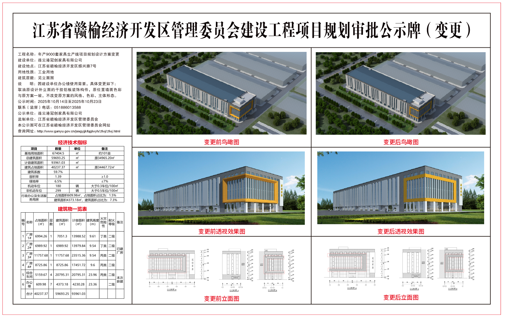 连云港冠创家具有限公司年产9000套家具生产线项目规划设计方案变更公示
