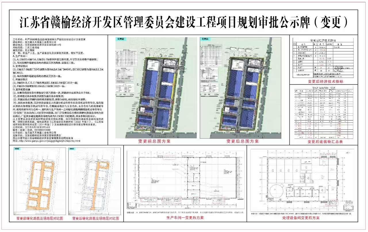 连云港天天海藻工业有限公司年产3500吨食品级褐藻酸钠生产线项目规划设计方案变更