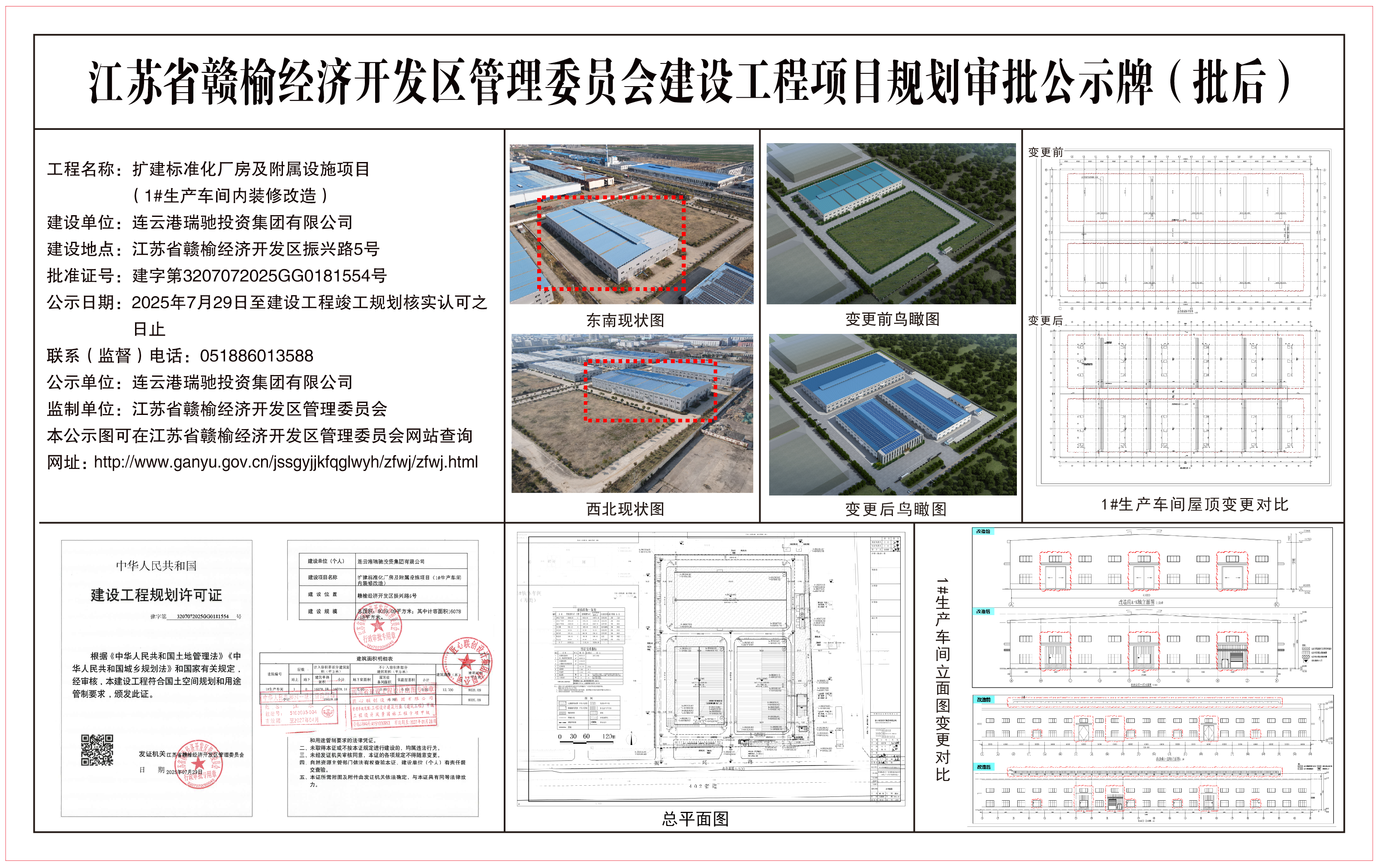 连云港瑞驰投资集团有限公司扩建标准化厂房及附属设施项目(1#生产车间内装修改造)批后