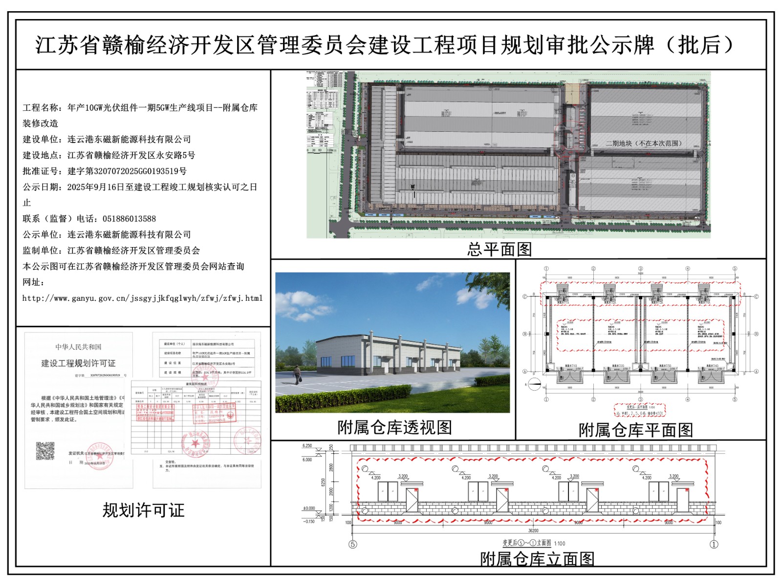 连云港东磁新能源科技有限公司年产10GW光伏组件一期5GW生产线项目--附属仓库装修改造规划审批(批后)